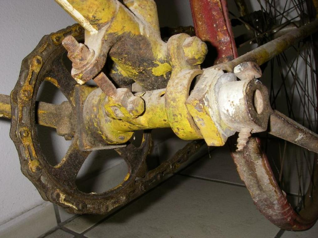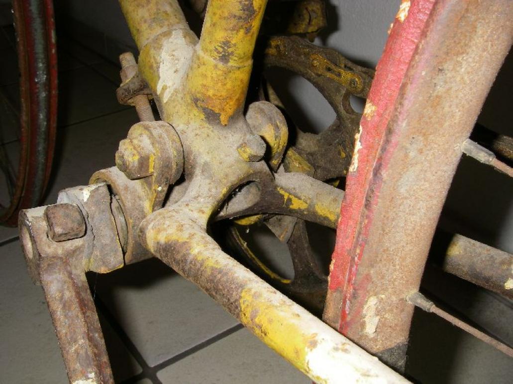 On top of the handlebars is a number engraved, looks like 9073 or something in that direction. It is a shame both hubs and wheels seem to have been changed at some moment in the past 100 years. They also made a total mess of the crank axle, but cranks and chainring look original.